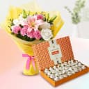 Deliver Bikanervala Kaju Kalash (750 gms) with 12 pcs Seasonal Flower Bouquet to surprise on special occasion. (Only Available at Delhi)