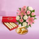 Bikanervala Mewa Bite Orange with Mixed Flower Arrangement