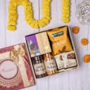 This gift hamper contains: - Phool Incense Cones - Jewel Farmer Roasted Almond (30g) - Spicy Makhana (60g) - Instant Filter Coffee (150g) - Loyka almond Brittle (50g) - Reusable Gift Box This thoughtfully curated gift hamper blends wellness and gourmet treats to offer a truly delightful experience. Start your day with a soothing aroma from Phool Incense Cones, creating a calming atmosphere. Enjoy a healthy crunch with Jewel Farmer Roasted Almonds (30g) and spice up your snack time with delicious Spicy Makhana (60g). For coffee lovers, the rich and bold flavor of Instant Filter Coffee (150g) makes every sip a joy. To satisfy your sweet tooth, the indulgent Loyka Almond Brittle (50g) offers a satisfying balance of sweetness and crunch. All these treasures come packaged in a reusable gift box, making it an ideal present for yourself or someone special, perfect for moments of relaxation and indulgence.