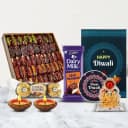 Delight your loved ones with this Blissful Dates Baklava N Ferrero Fusion and make them realize how special they mean to you. This Gift Box includes - 1. Dates Baklava (250 gm) 2. 3 pc Ferrero Rocher 3. Cadbury Dairy Milk Roast Almond Chocolate Bar (36 gm) 4. 2pcs Fancy Diya 5. A Happy Diwali Fridge Magnet (Handmade, MDF Board, 3x3 in) 6. Ganesh Laxmi Mandap 7. Free Diwali Card