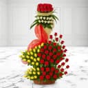 This arrangement is made of: - 60 Red Roses - 30 Yellow and White Roses A classic gift, this Breathtaking Beauty of Red Yellow White Roses makes any celebration much grander. This eye-catching Arrangement is a perfect gift to express your feelings as it is decorated with 30 Yellow and White Roses and 60 Red Roses.