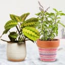 Present your loved ones this Breathtaking Selection of 2 Air Purifying Indoor Plants and let them taste the real flavor of your love. This lively Planter Gift set features Holy Tulsi Plant and Maranta Prayer Plant, in a designer Plastic Pot. Plant Type - Indoor - Air Purifying Plant Size - 3 to 7 inch Pot Size - 3 to 4 inch