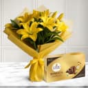 Bright Bouquet of Yellow Lilies with Ferrero Rocher Moments