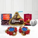 Gift your dear ones with this Brilliant Almond Dragee n Hersheys Chocolate so that they feel very special on Diwali. This Deepavali Gift Basket consists of - 1. Almond Dragee (120 gm) 2. Hersheys Chocolate Packet (150 gm) 3. Set of 2 Zardosi Diya 4. Ganesh Laxmi Coin 5. Free Diwali Card