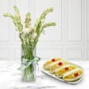 Cham Cham from Karachi Sweet Mart with Rajnigandha Stems in Glass Vase