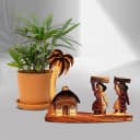 Elevate any occasion with this delightful pairing, featuring a Broadleaf lady palm known for its incredible air-purifying properties, alongside a stunning handcrafted wooden showpiece. This vibrant palm thrives in various settings, bringing a touch of nature's elegance indoors or out. Planted in a rustic brown pot, it adds a natural appeal, while the handcrafted farmer girls showpiece injects a playful charm into your space. Ideal for celebrations, thoughtful gifts, or simply to brighten your home, this duo conveys a deep appreciation for those you cherish.