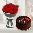 Offer the special people in your life this Cheerful Red Roses Bouquet with Chocolate Cake on any event day and let them be on cloud nine while receiving it. This flowers n cakes combo includes: Details: No. of Flowers: 36 Type of Flowers: Roses Flower Color: Red Type: Bouquet (tied with Cloth and Ribbon) Type of Cake: Chocolate Cake Shape of Cake: Round Cake Topping: Love U message, Red Heart Weight: 1kg.