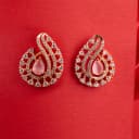 Step into sophistication with these chic earrings, showcasing a pear-shaped blush gemstone embraced by a delicate halo of sparkling CZ stones, reminiscent of a graceful flame. These earrings are the perfect touch to enhance your outfit, seamlessly blending contemporary style with timeless elegance—ideal for both glamorous parties and cozy gatherings. With their light and airy feel, they are the ultimate adornment for the fashion-forward woman who values elegance.