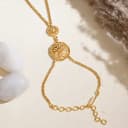 This is a gift of: - A Golden Haathphool Illuminate your style with our Gilded Grace Hand Ornament, an empress-worthy addition to your jewelry repertoire. This elaborate golden haathphool is a signature piece that embodies the grandeur of traditional jewelry with a modern twist. Renowned for its intricate detailing and radiant golden hue, it transforms any outfit into a luxurious ensemble, perfect for celebrations, weddings, and special occasions. Designed to wrap beautifully around your hand, this piece is both glamorous and comfortable. Its stunning design ensures you stand out in any crowd. Ensure it remains as dazzling as the day you received it by spot-cleaning, storing it separately, and keeping it away from water and fragrances.