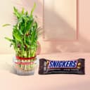 Experience the perfect blend of nature and sweetness with our Choco Bamboo Harmony Gift Set. Featuring a beautiful Double Layer Bamboo Plant placed in an elegant glass pot, this gift will enhance any room. Paired with a delectable 75-gram pack of Snickers chocolate, it offers a delightful way to show affection. Perfect for any celebration or simply to brighten someone's day!