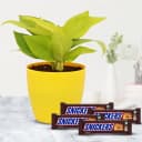 Gift a blend of nature and indulgence with our Choco-Green Delight. This unique offering features a lush Money Plant, revered for its ability to bring wealth and success, paired with four delicious Imported Snickers. Presented in a chic plastic pot, measuring 3 to 7 inches, this gift is a heartwarming way to show you care. Ideal for celebrating special moments or simply brightening someone’s day, this combo spreads happiness and sweetness!