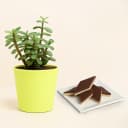 Chocolate Katli from Mithas Delicious Sweets with Jade Plant in Plastic Pot