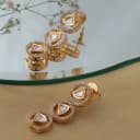 This is a gift of: - A Pair of 3 Tier Round Diamond and Kundan Earrings Our 3-tier round diamond and Kundan earrings are a masterpiece of craftsmanship and style. Each tier features sparkling diamonds and meticulously detailed Kundan work, offering a perfect balance of shimmer and traditional sophistication. These earrings are ideal for adding a sense of timeless grace to weddings, formal dinners, and any significant celebrations. The layered design provides a striking aesthetic, ensuring they always make a memorable impact. Care Tips: For optimal care, spot-clean with a soft cloth, store them in their own box, and keep away from fragrances and water to maintain their dazzling appearance.
