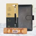 This gift set has: - A Planner Dairy - A Parker Beta Pen - 4 pcs Ferrero Rocher Chocolates Click to deliver this gentle Gift Pack of Planner Dairy with Pen N Chocolates that delivers happiness instantly when unwrapped. This fantastic Gift will be an unforgettable corporate gift as it contain a nice Planner Dairy, Parker Beta Pen and 4 pcs Ferrero Rocher Chocolates.