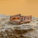 Discover elegance with this contemporary V-ring. Crafted with a stunning array of round-cut cubic zirconia stones on a luxurious rose gold plated band, this piece features a captivating cluster of baguette-cut stones, exuding sophistication. Perfectly designed, it’s a striking statement accessory that enhances any outfit, making it an essential addition to your jewelry box.