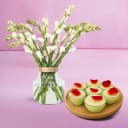 Deliver 12pc Daab Sandesh from Balaram Mullick with a Rajnigandha Stems in a Glass Vase for your known N loved people. (Only Available at Kolkata)