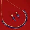 This gift box contains: - Gold Plated AD Necklace (Blue) - A Pair of Matching Earrings Indulge in the mesmerizing allure of sapphire with our Dazzling Gold Plated AD Jewellery Set. This exquisite jewellery ensemble features a radiant gold-plated necklace adorned with intricate details and a pair of matching earrings that exude sophistication and charm. The deep blue hue of the sapphire gemstones adds a touch of luxury and elegance to any outfit, making this set a perfect choice for special occasions or everyday wear. Whether youre looking to treat yourself or surprise a loved one, this stunning jewellery set is sure to delight with its timeless beauty and impeccable craftsmanship. Elevate your style and make a statement with the Sapphire Sparkle Set, a true testament to the enduring allure of sapphire and the artistry of fine jewellery design.
