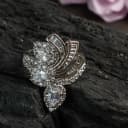 Dazzling Radiance Set. This captivating ring features a lightweight silver-plated design adorned with three stunning pear-shaped cubic zirconia gems, artfully complemented by radiant round and baguette accents, perfect for adding a touch of glamour to any outfit.