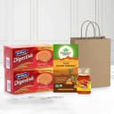 Deck the beautiful mother-child relationship with this Dazzling Tea Time Gift Combo for Mom and convey your deepest sentiments on this Mothers Day. This Hamper contains- 1. 1 pack of Tulsi Ginger N Turmeric Tea from Organic India (25 Tea Bag) 2. 1 Bottle of Dabur Honey (35 gr.) 3. 2 pack of McVities Digestive Cookies (250 gr. each) 4. 1 Gift Bag.