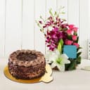 Indulge in a celebration of sweetness and beauty with our Decadent Chocolate Delight & Blooming Elegance gift. This exquisite package features a rich 1 kg chocolate cake from the prestigious 5 Star Bakery, paired perfectly with a stunning bouquet of 24 assorted flowers. Whether for a special occasion or just to express your affection, this combination is bound to create joyful memories. For recipients outside Chennai, rest assured that they will receive a cake of equal or greater weight from a top local bakery, complete with a delightful Cadbury Celebration Pack. Spread happiness, one delicious slice and lovely bloom at a time.