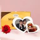 Make your Valentines Day more memorable with this lovely gift of Delectable 16 pcs Ferrero Rocher Moment Chocolates N Twin Heart Personalized Photo Frame with Red Velvet Rose Gift Combo and curve your name on the hearts of your loving Hubby. Please send a High Resolution Photo or Your Personalized Message that needs to be added to the product at designphotocake@gmail.com along with you’re Alphanumeric Order Number.