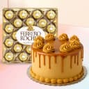 This gift set has: - 24 pcs Ferrero Rocher Chocolates Pack - Eggless Butter Scotch Cake (1 Lb) Impress your dear ones by sending this Delectable Combo of 24pc Ferrero Rocher Chocolates with 1 Lb Eggless Butter Scotch Cake and elegantly brighten up their mood instantly.