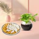 Celebrate the beauty of nature and sweetness with this enchanting combo. Featuring 250 grams of Mohanlals Mithaiwala Kesar Kaju Katli, this indulgent sweet treat pairs beautifully with a flourishing Money Plant in a stylish glass pot. Ideal for expressing emotions on special occasions or simply to brighten someone's day, this gift embodies heartfelt wishes and positive growth. Available exclusively in Ahmedabad, this combination is sure to delight and inspire.