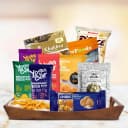 Surprise your loved one with the Delightful Morning Treats Breakfast Hamper. This delightful collection includes nourishing snacks that are perfect for starting the day. Featuring 5pc Yoga Bar Multigrain Energy Bar, scrumptious Unibic Oatmeal Cookies, zesty 4700 BC Lime Cheese Popcorn, crunchy Mr. Makhana Fox Nuts, delicious Pure Foods Banana Chips, savory Jeera Khakhra, crispy Crunch N Munch Roasted Masala French Fries, and light Orion Rice Crackers, all beautifully presented in a chic reusable wooden tray. A perfect way to show your appreciation and celebrate meaningful moments with flavors that delight.