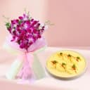 Introduce a delightful experience to your loved ones with this exquisite combination of Delicate Rasmalai and a stunning Orchid Arrangement. This collection features six pieces of our creamy Rasmalai, each bite delivering a sweet, rich flavor that melts in your mouth. The accompanying orchid arrangement brings an elegant charm, perfect for any heartfelt occasion. Gift this wonderful pairing and be the reason for their joyful smiles. Exclusively available in Mumbai, this experience blends sweetness with floral beauty.