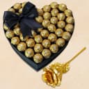 Mesmerize your loved ones with this Delightful Rose Day Gift of Heart Shape Arrangement of 48 pc Ferrero Rocher Chocolates with Golden Rose and make their Valentines Day very special.