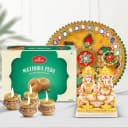 Convey your heartfelt Diwali wishes by gifting this Devotional Diwali Gift Hamper to the people dearest to you. This Gift Hamper comes with Haldiram Mathura Pedha (300 g), Laxmi-Ganesh Idols, 4 PC Earthen Pot and Designer Steel Thali.