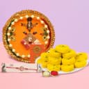 Celebrate the essence of tradition with our Divine Blessings Gift Set featuring Haldirams Kesar Pedas and a stunning Pooja Thali. This combo includes a beautifully designed Pooja Thali (7-8 inch) and 250g of delectable Kesar Pedas that melt in your mouth, sweetening every occasion. Additionally, receive a complimentary Rakhi along with Roli, Tilak, and Chawal, providing all essentials for a joyous Raksha Bandhan celebration. Perfect for those who value deep-rooted rituals and exquisite Indian sweets.