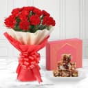 Home›Carnations›Dry Fruits Barfi from Mithas Delicious Sweets with Red Carnation Tissue Wrapped Bouquet