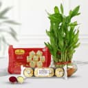 Excite your bhaiya on this marvelous occasion by sending this Eco Friendly Assortment Gifts which will bring loads of contentment into his life. This gift combo has - a) 2 Tier Lucky Bamboo Plant, b) 4 pcs Ferrero Rocher, c) 200 gm Haldirams Soan Papdi, d) with Free Bhai Dooj Tika N Chawal.