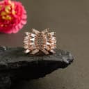 This stunning vintage-inspired ring is beautifully crafted with a radiant Rose Gold plated setting, embellished with sophisticated baguette-shaped Cubic Zirconia stones that create a breathtaking sparkle. Ideal for any occasion, this piece is designed for the fashion-forward woman.