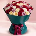 This bouquet is made of: - 50 Colorful Roses Buy this lovely Bouquet of 50 Roses in vibrant shades, wrapped by a tissue to make your dear ones extremely happy and joyous.