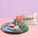 Celebrate the bond of love and tradition this Raksha Bandhan with our Elegant Silver Plated Pooja Thali. Designed to elevate the sacred rituals, this thali symbolizes your heartfelt wishes and devotion. Measuring 5–6 inches, its stunning silver-plated finish radiates grace during your celebrations. Ideal for performing aarti and applying tilak, this thali comes with a complimentary Rakhi, Roli, Tilak, and Chawal to ease your ritual preparations. Whether gifting to your sibling or sending blessings from a distance, this thali embodies the spirit of the festival, making it a cherished addition to any celebration.