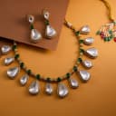 Radiate sophistication on your special day with the Emerald Elegance Bridal Jewelry Set. This ensemble features stunning teardrop gems framed by a halo of sparkling crystals, creating a breathtaking display. The necklace's cascading design enhances the neckline beautifully, while vibrant emerald accents add a rich touch that pairs perfectly with both traditional and modern bridal fashions. The matching earrings reflect the necklace's exquisite design in a graceful two-drop style, ensuring you look effortlessly chic. Perfect for weddings, receptions, or any celebratory occasion, this bridal jewelry set encapsulates timeless beauty and elegance.