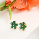 This is a gift of: - Green Flower Design Studs Capture the essence of charm with Enchanted Green Petals. These green flower design studs are a stunning blend of elegance and simplicity, making them perfect for any wardrobe. Their intricate design adds a touch of sophistication to your look, ideal for both casual and formal occasions. Made with attention to detail, they reflect a love for nature-inspired beauty. These earrings are a wonderful gift for anyone who appreciates refined accessories. For optimal care, simply spot-clean, store separately, and avoid water and fragrance. Bring a touch of enchantment to your jewelry collection with Enchanted Green Petals.