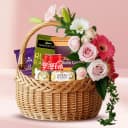 Make others feel your presence by sending this Enticing Basket Full of Chocolates with Pepsi Can n Nachos and let them feel very delighted. This gift hamper contains: 1. 4 pc Ferrero Rocher 2. Cadbury Dairy Milk Silk (140g) 3. Cadbury Temptation (72g) 4. 2 Coco Cola Can (160 ml each) 5. Cornitos Nachos (Big Size) 6. A Basket decorated with Mixed Flowers.
