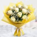 This arrangement is made of: - 10 White Roses - Gypsy - Wrapped with a Tissue Prepare to be enchanted by the captivating serenade of this Eternity White Roses Bouquet. White roses and gypsy flowers intertwine, creating a composition that is both mesmerizing and romantic. Lovingly wrapped in tissue, this arrangement is a heartfelt gift that will leave a lasting impression.