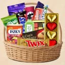 Surprise loved ones with the Evening Indulgence Gift Basket, brimming with a luxurious assortment of chocolates, snacks, and refreshing drinks. Unwind with the creamy Cadbury Dairy Milk Home Treat Pack (126 gm) and enjoy the bliss of five heart-shaped handmade chocolates alongside 100 gm of homemade chocolates. For a sweet twist, the Imported Fox Tin Mixed Fruit Candy (180 gm) awaits, while Pringle Chips (Sour Cheese n Onion) (107 gm) add a delightful crunch. Refresh with Tang Juice (Lemon Flavour, 100 gm) and invigorate with ALO Aloe Vera Juice (200 ml). Satisfy those sweet cravings with an exciting mix of ITC Dark Fantasy Chocolate Biscuits (75 gm), McVities Just Ginger Digestive Biscuits (300 gm), Bounty Coconut Chocolate Bar (57 gm), Imported Snickers (45 gm), and Twix (50 gm). All these delectable treats are elegantly arranged in a chic cane basket, making it ideal for any occasion.