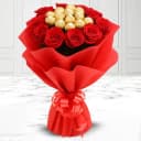 This bouquet is made of: - 16 pcs Ferrero Rocher Chocolate - 16 pcs Red Roses Bring smiles on the faces of your dear ones with this Exclusive Bouquet of Ferrero Rocher Chocolate with Red Roses (16 pcs each) wrapped by a tissue and make your bond stronger.
