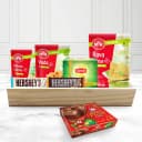 Bring joyful moments into the lives of your dearest ones with this Exclusive MTR Delight Breakfast Hamper and let them cherish it for lifetime. This X-mas Hamper comes with 1. MTR Masala Upma Mix (180g) 2. MTR Rava Dosa Mix (500g) 3. MTR Vada Mix (200g) 4. Lipton Honey Lemon Green Tea Bags (10 Pcs) 5. Hersheys Cookies n Crème Chocolate Bar (40g) 6. Hersheys Whole Almond Chocolate Bar (40g) 7. Biskfarm Fresh Plum Cake Box (450g) 8. A Wooden Tray.