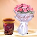 Exotic Bouquet of Pink Carnation with Kwality Walls Choco Brownie Fudge Ice Cream