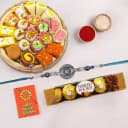 Discover the perfect blend of tradition and luxury in this exquisite treat. Our Exquisite Delight collection features a rich variety of Haldiram's Assorted Sweets, elegantly paired with the indulgent Ferrero Rocher chocolates. At 500 grams, the assorted sweets provide a symphony of flavors to entice any sweet lover. As an added touch, every purchase includes a beautiful Rakhi, making this gift perfect for any celebration or special occasion, ensuring moments filled with joy and love.