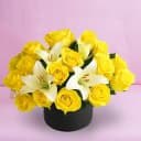 This arrangement contains: - 25 Fresh Flowers Arrangement of Yellow Roses n Red Anthodium Convey your heartfelt wishes by gifting this floral arrangement to the people dearest to you.