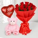 This is an exquisite gift hamper for your mom. There is a lovely bouquet that includes fresh Roses, Cute Teddy Bear and Balloon.