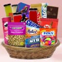 Unwrap a celebration of flavors with the Exquisite Gourmet Delight Basket, designed for the true connoisseur. This basket is filled with premium Tong Garden Roasted Almonds and Pistachios, providing a nutritious crunch to start your tasting adventure. Delight in an assortment of finest chocolates including the popular Cadbury Home Treat Pack, Snickers, Twix, Bounty, KitKat Crisp Wafers, and luxurious Cadbury Bournville. Complement your sweet experience with savory snacks like Cheese Popcorn, Pringle Chips, and Malkist Crackers. Refresh yourself with a unique Sikanji Set for a cool sip on warm days. Topped off with a classic Fox Pouch candy, this basket makes for a perfect gift or a lavish treat for any occasion.