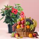 Experience the perfect blend of vibrant beauty and delectable delight with this stunning gift set. Featuring a flourishing Hibiscus Plant in an elegant plastic pot, this arrangement brightens up any indoor environment. Complementing the plant is a luxurious basket filled with 3 kg of seasonal fruits, promising a refreshing experience for the palate. Ideal for celebrations or simply to show you care, each element of this gift resonates with affection and thoughtfulness.
